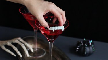 Garnish the drink with a set of plastic vampire fangs placed on the rim.